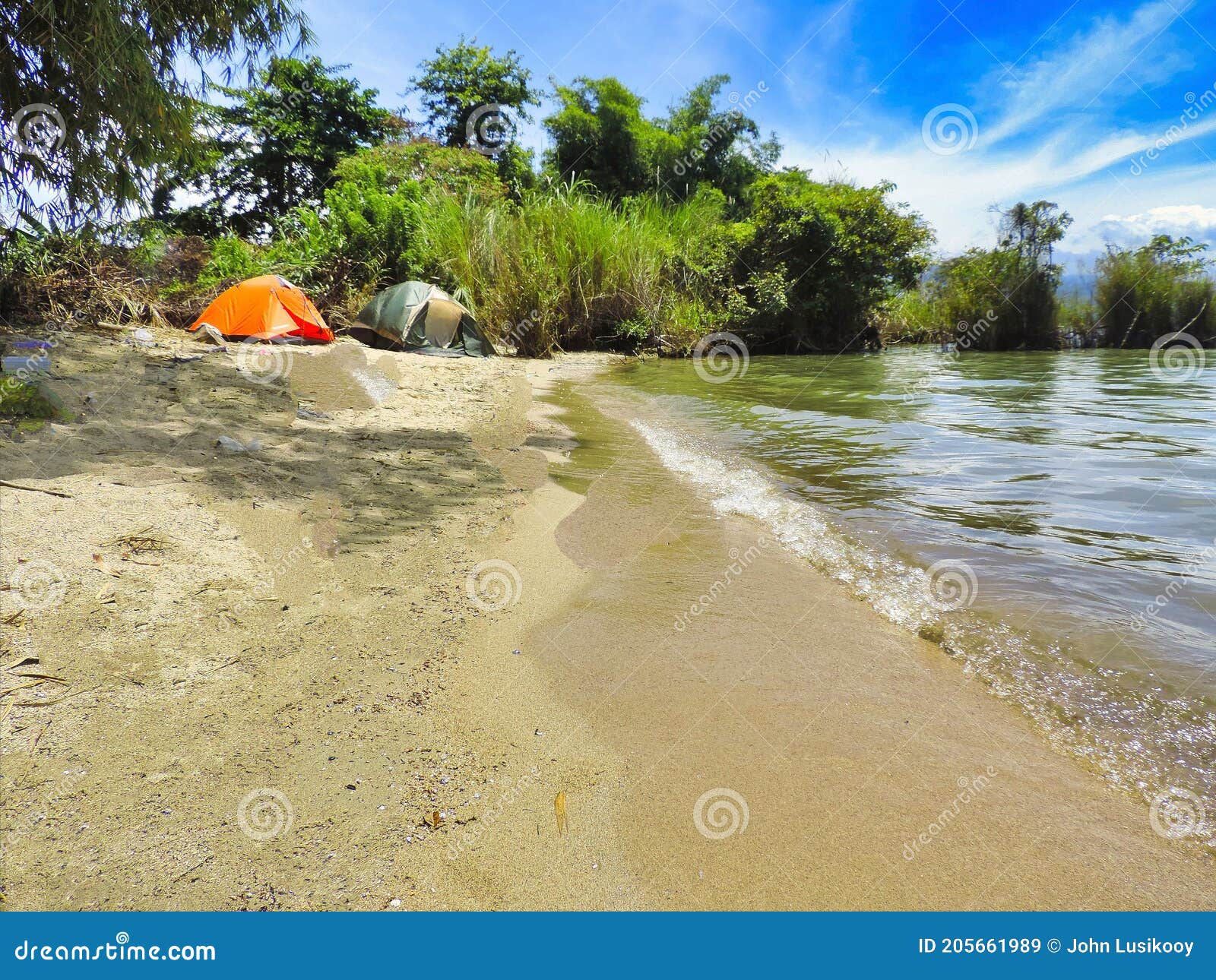 Camping on Pantai Sandikala on the shores of Lake Poso which is natural like by the sea
